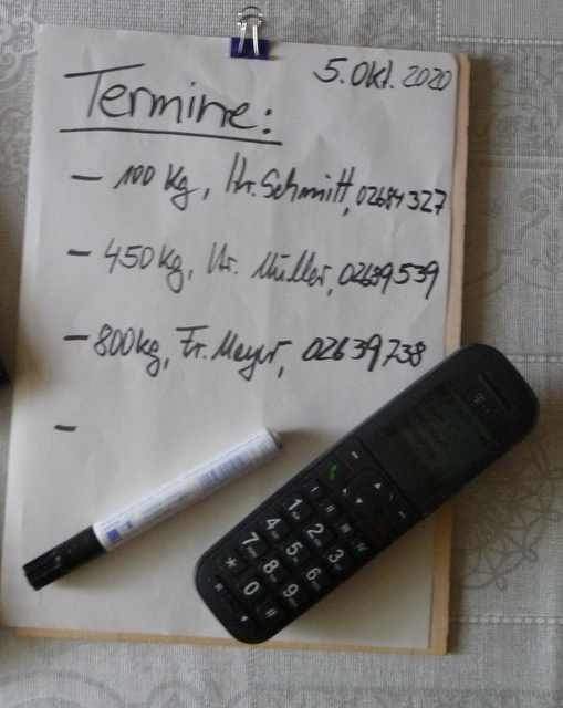 Wenn der Saft fertig ist, rufen wir Dich an. Bitte hole die Boxen dann sobald wie möglich ab, da unser Lagerplatz sehr begrenzt ist. Die Abholung ist immer Montag bis Samstag von 9 bis 19 Uhr möglich.